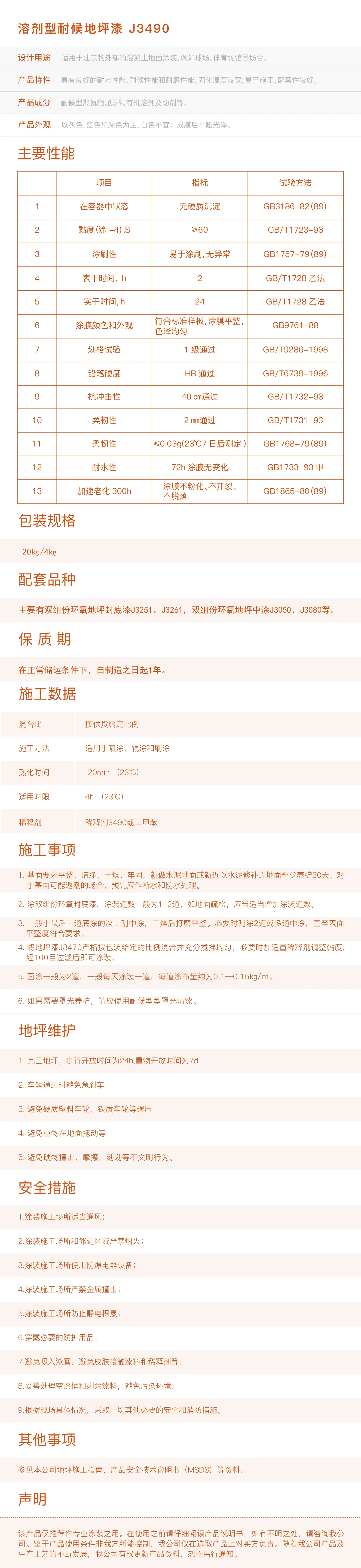 溶剂型耐候地坪漆J3490